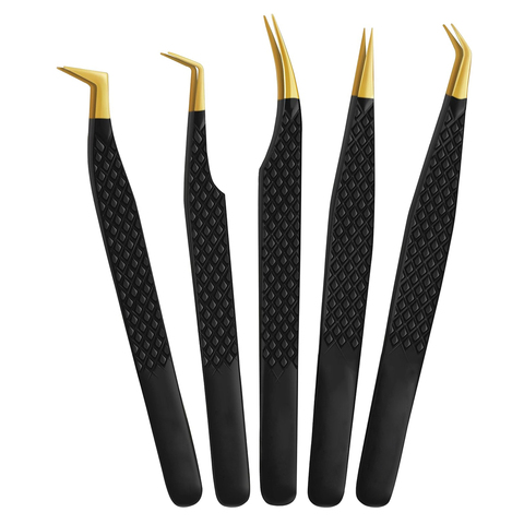 Alta precisão cílios extensão pinças anti derrapante curvo ponta volume cílios pinças